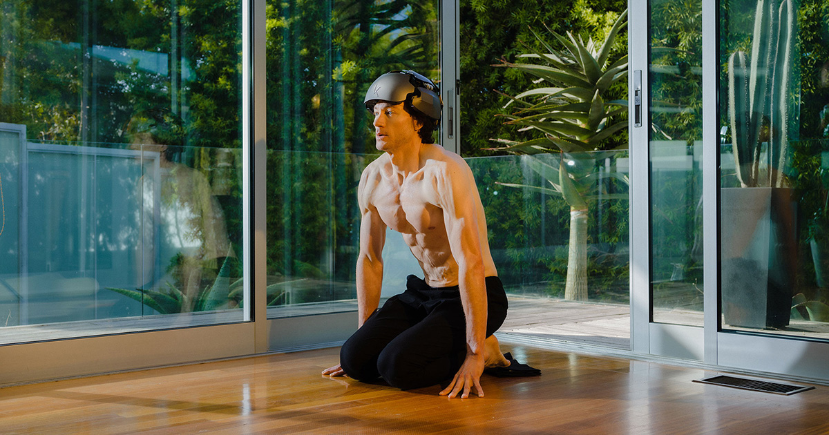 [pic: Bryan Johnson wearing the Kernel Flow interface helmet]