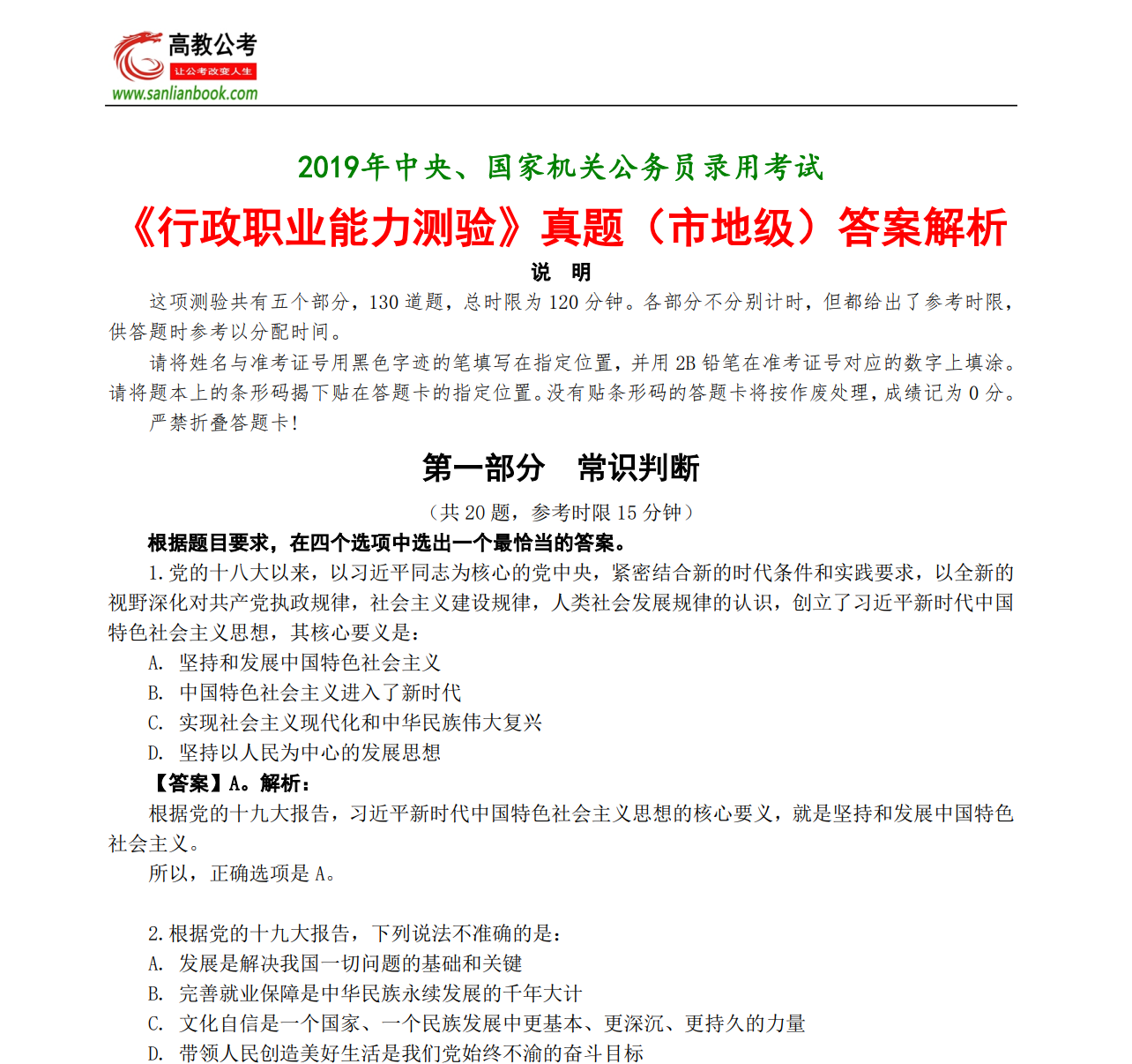 公务员 | 2019 年行政能力测试 常识判断