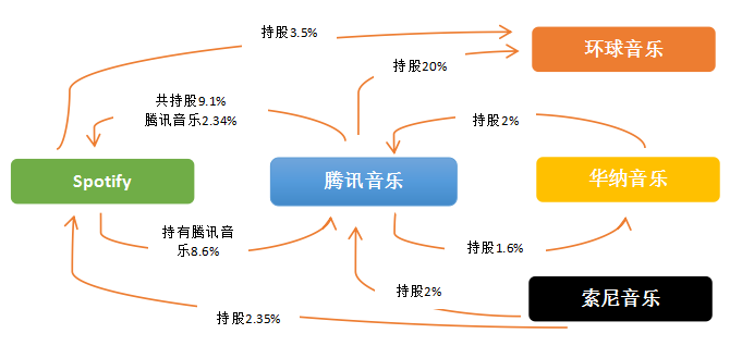 腾讯音乐的投资版图覆盖了环球、索尼、华纳的三大唱片,建立了自己的竞争壁垒。据音乐先声了解,腾讯音乐曾先后斥资 70 亿购入环球音乐 20% 的股份,并在华纳音乐集团IPO前夕,花费 2 亿美元购进了华纳音乐全部股份的 1.6%。