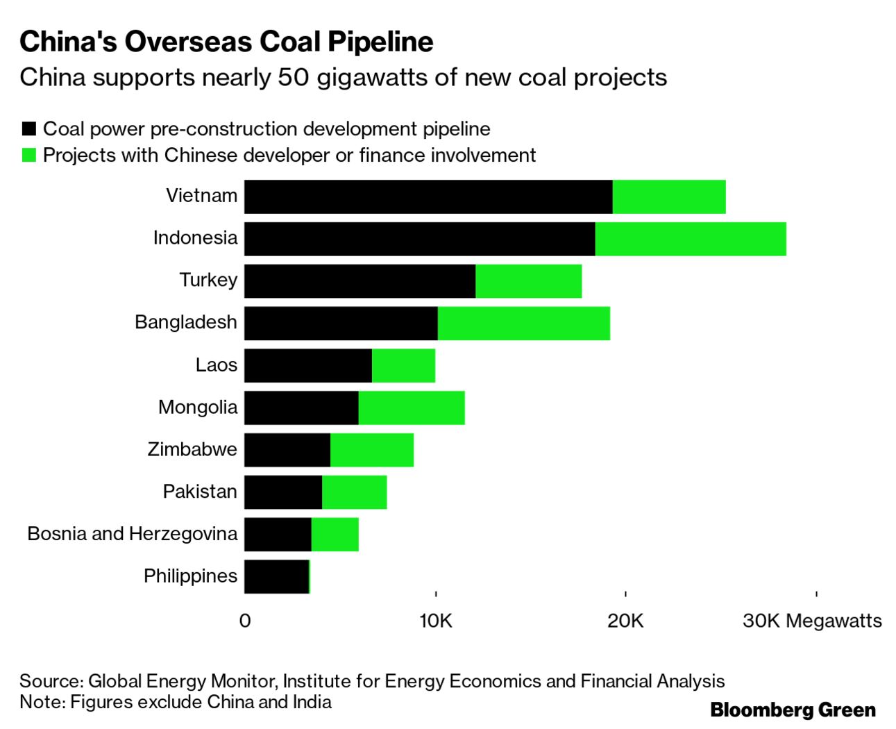 尽管习近平总书记的宣称缺乏细节,但可能对世界煤炭输送导致显著的影响。中国支持了其境外和印度境外56%的燃煤电厂项目,依据世界能源监管会(Global Energy Monitor, GEM)的数据。