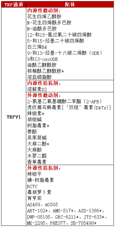其实,因为TRPV1是慢性疼痛治疗的靶点,制药界对其了解的相对比较清楚,所以我们已经获得了这么一个清单: