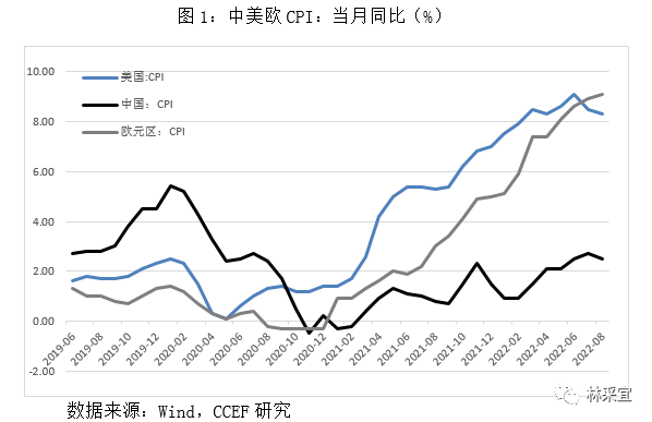 叠加2022年2月以来俄乌冲突的影响,随之而来的是全球通胀的高烧不退和资产价格的不断上涨。因此,2022年3月以来,美联储接连三次加息并开始缩表,尽管货币政策在快速紧缩,但8月CPI数据同比上涨8.3%,仍然处于40年来的相对高位。美国金融资产规模也已达到GDP的6倍以上。欧元区8月CPI同比上升9.1%。相对而言,中国央行更多通过结构性货币政策工具定向投放流动性,央行资产负债表的扩张程度相对较小,但由于海外通胀引起原油、粮食、工业原料等价格上升或致中国面临输入型通胀的压力,中国CPI数据也存在上涨的压力,8月份同比上涨2.5%。