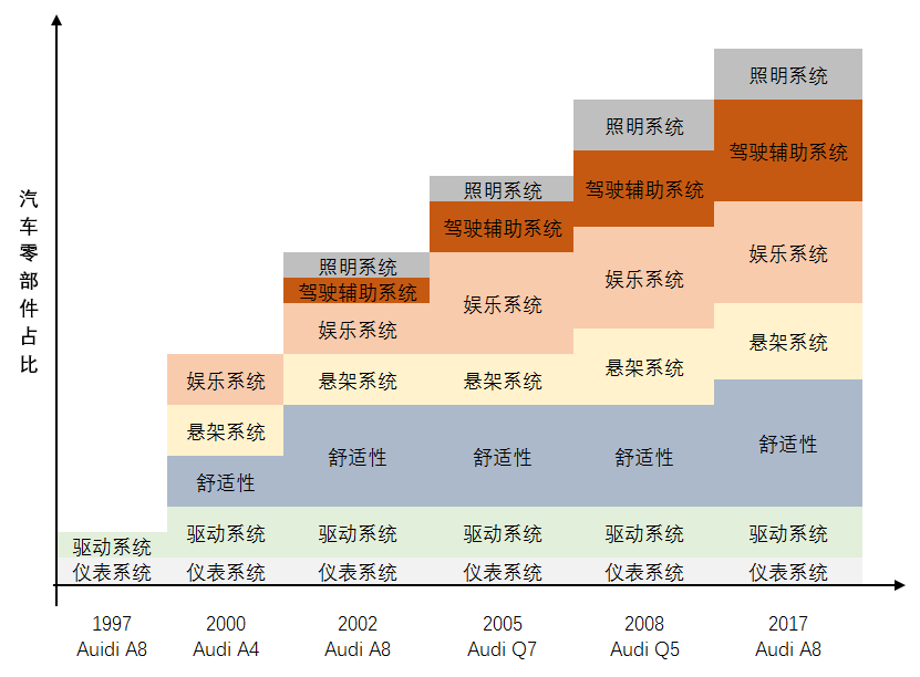 随着硬件结构的变化,各ECU的软件也被集中到中央计算模块下进行统一调配,不仅ECU的数量大幅减少,集中式ECU也令OTA升级更加容易,为汽车提供更高的算力的同时,支持更灵活高速的通信网络,为汽车进一步智能化提供支持。