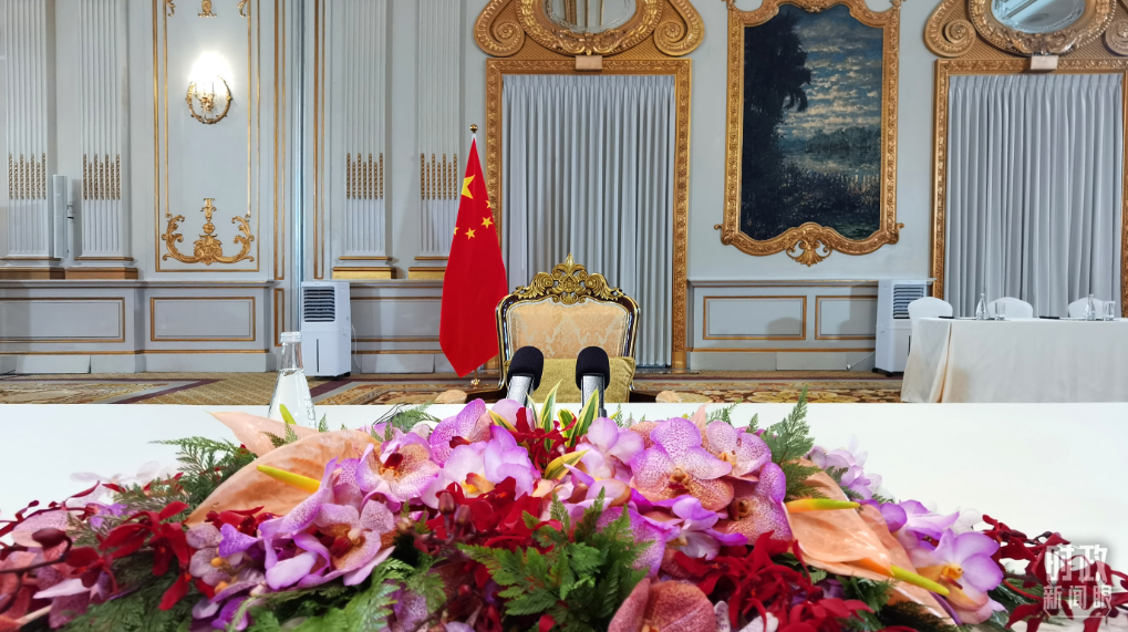 △中文会见开始前的现场。(总台央视记者郭鸿拍摄)