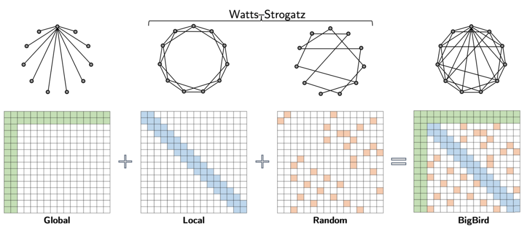 谷歌研究院提出的 BigBird 稀疏注意力模型由处理输入序列所有部分的全局 token、局部 token 和一系列随机 token 组成