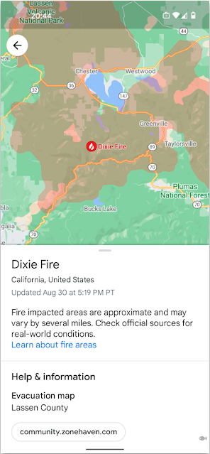 借助环保路线,Google 地图将显示最快的路线和最省油的路线,用户可以选择最适合的路线。Google 地图中的野火层可在紧急情况下为人们提供重要的最新信息。
