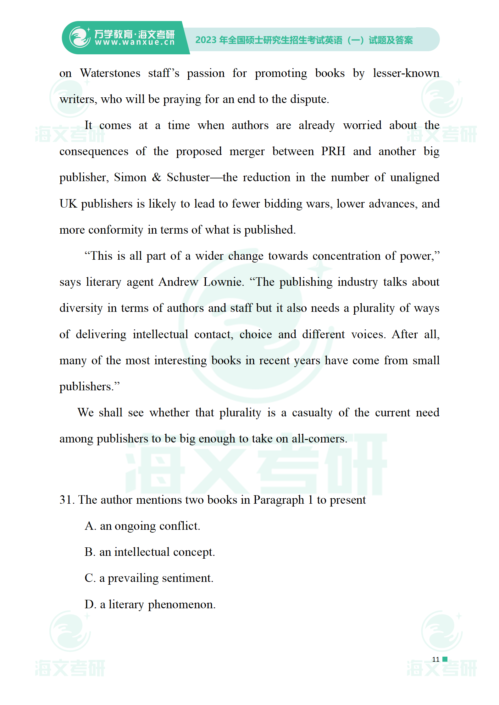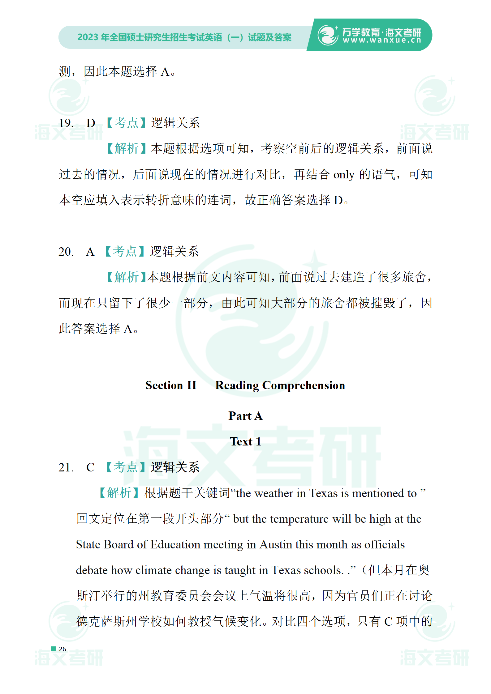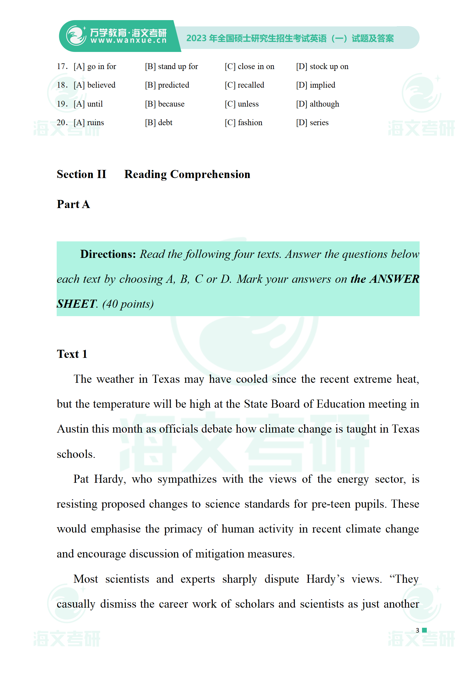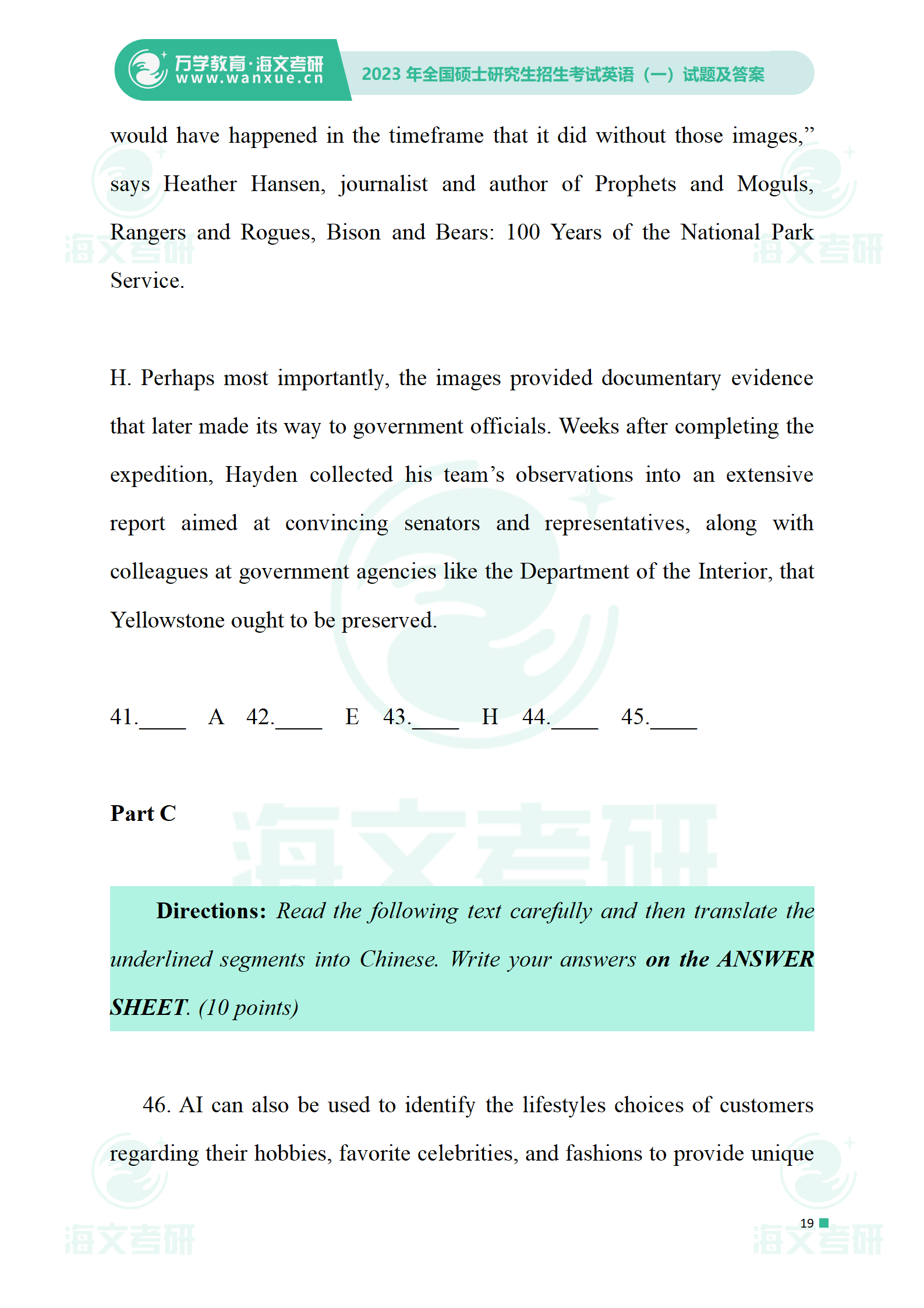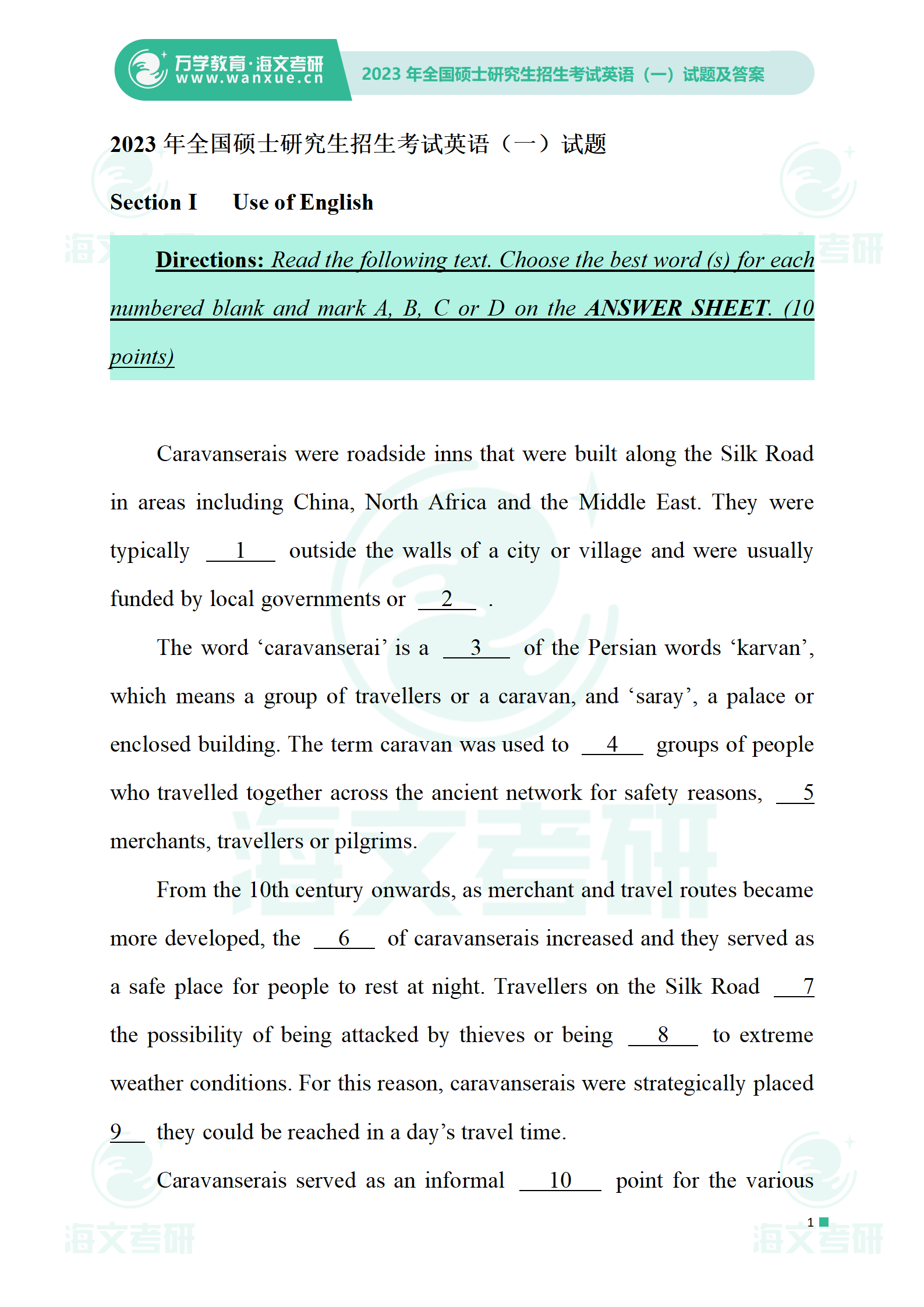 2023年考研英语一 试卷及答案
