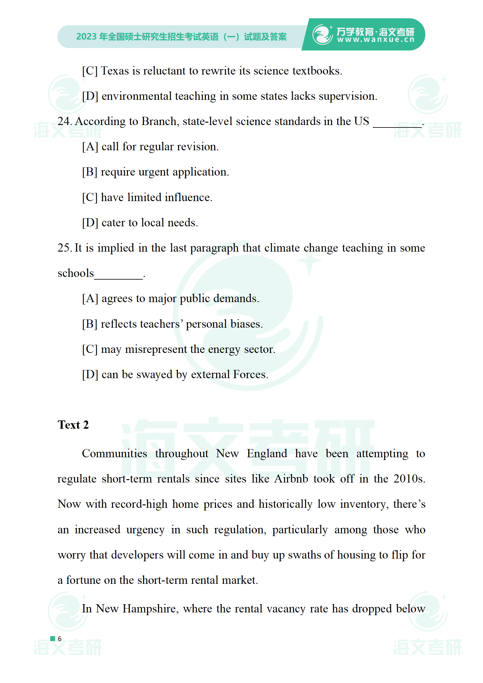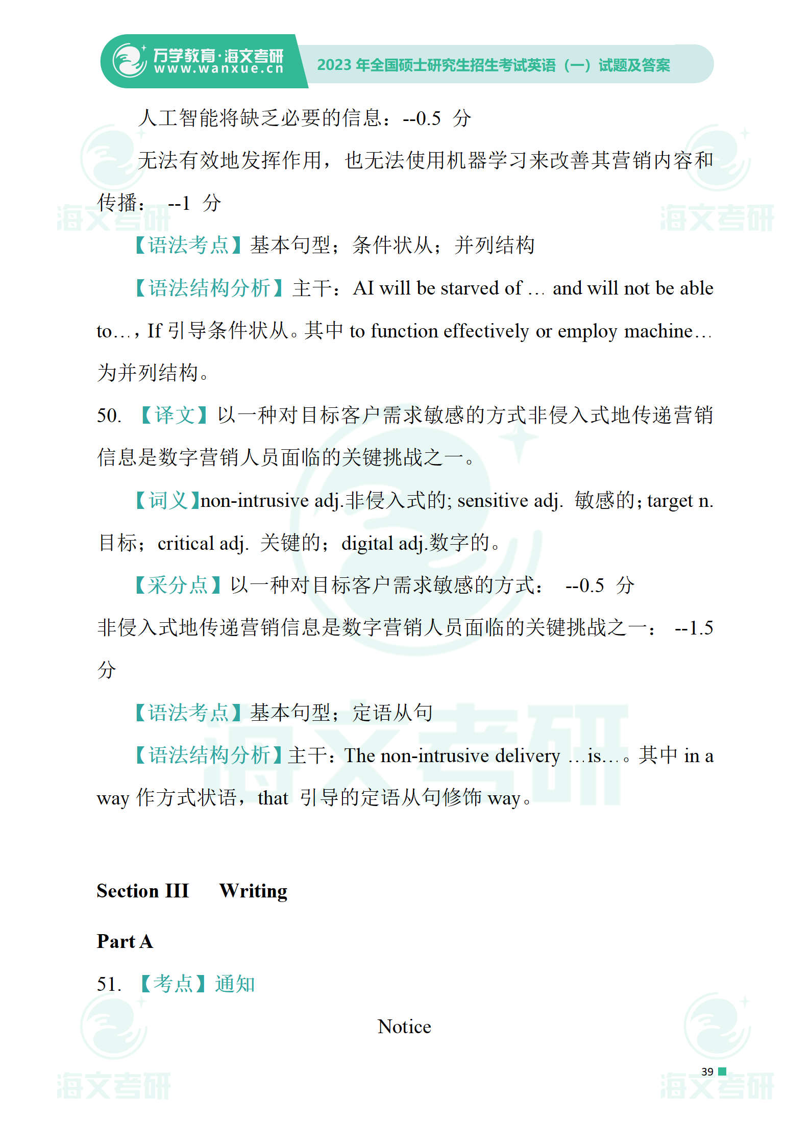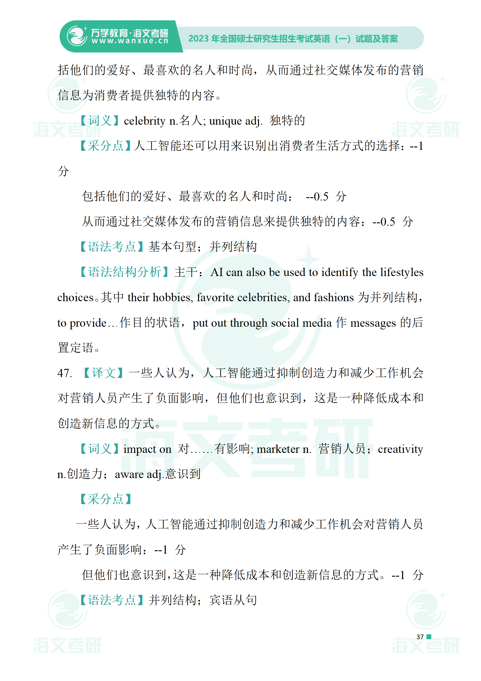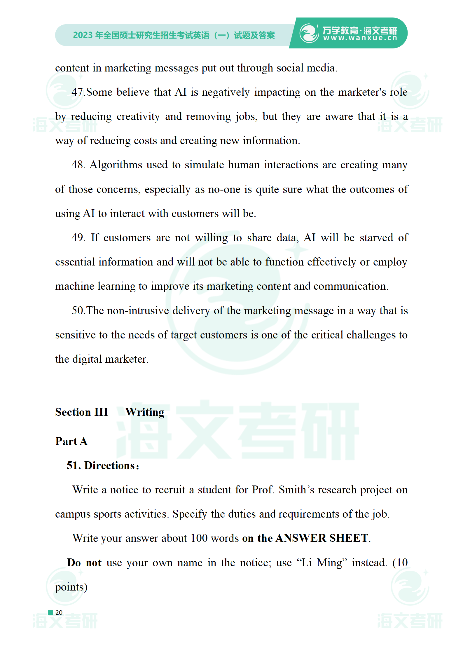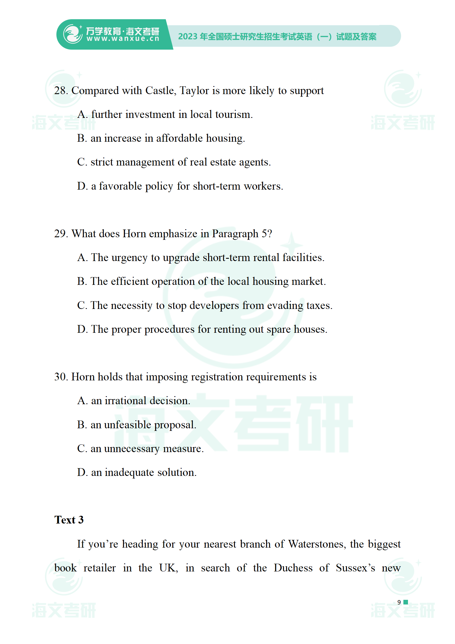 2023年考研英语一 试卷及答案