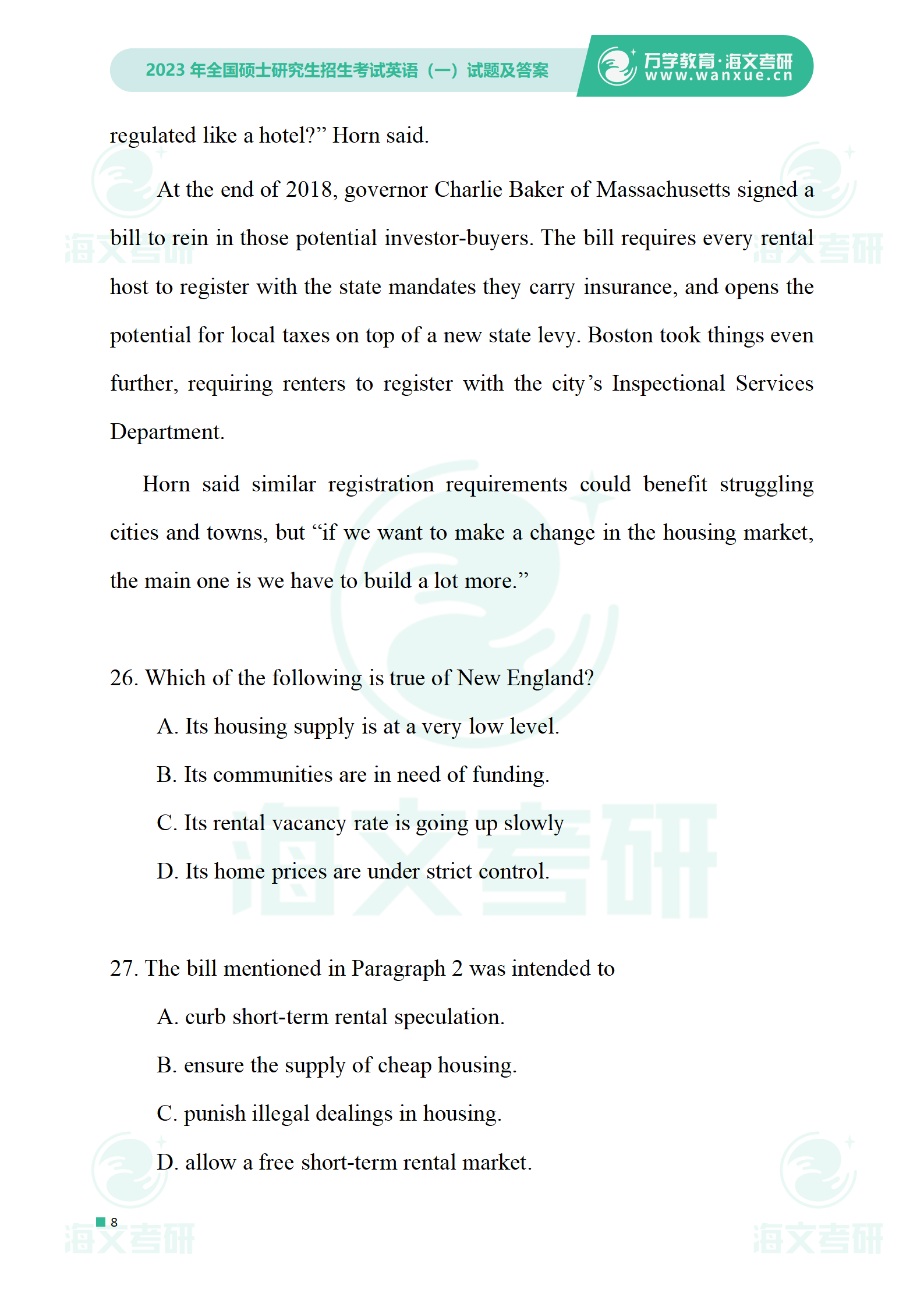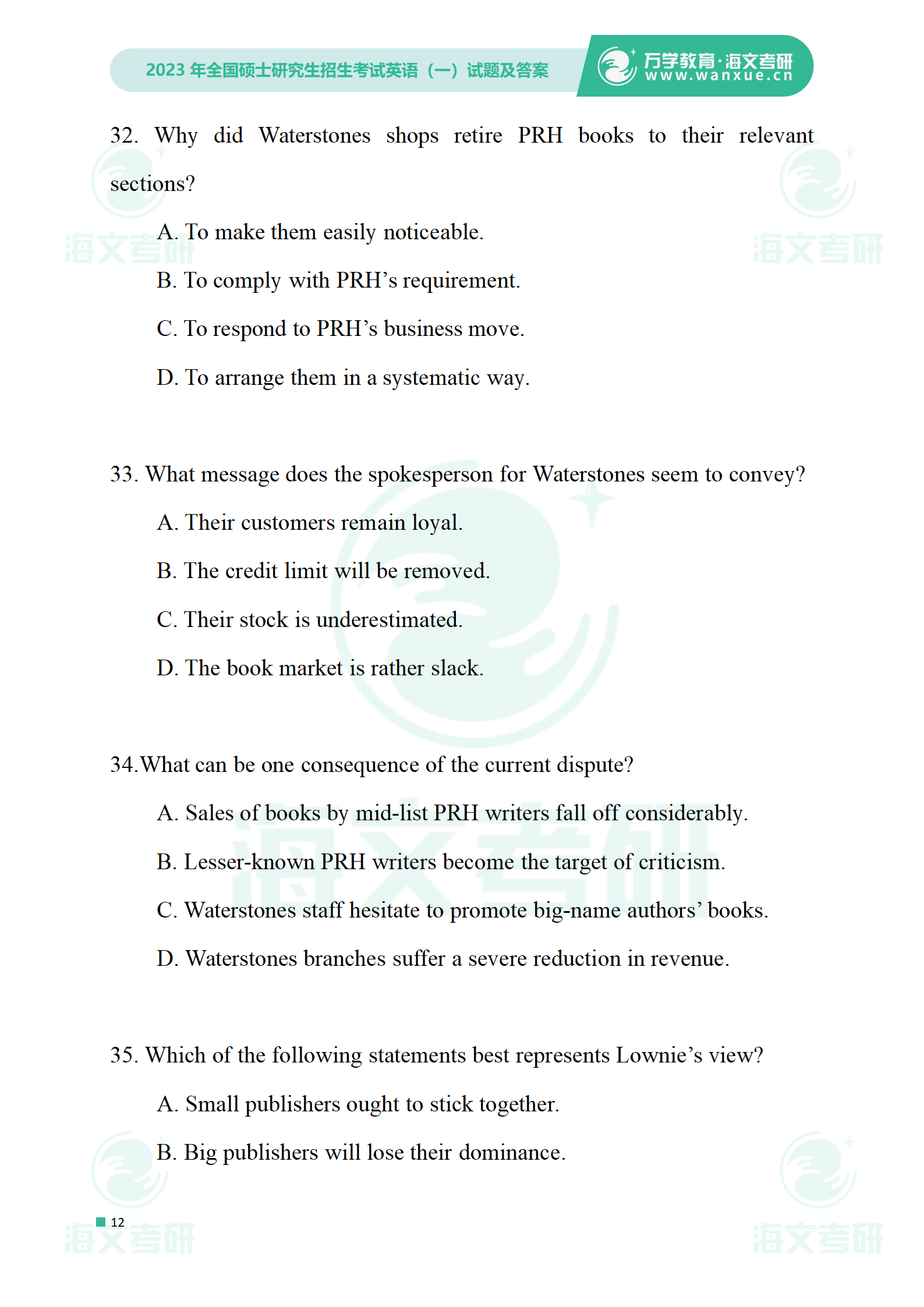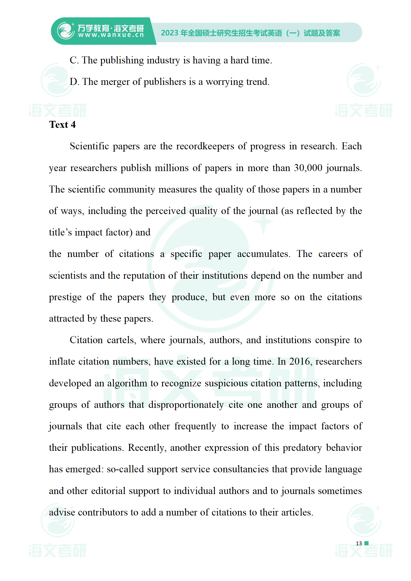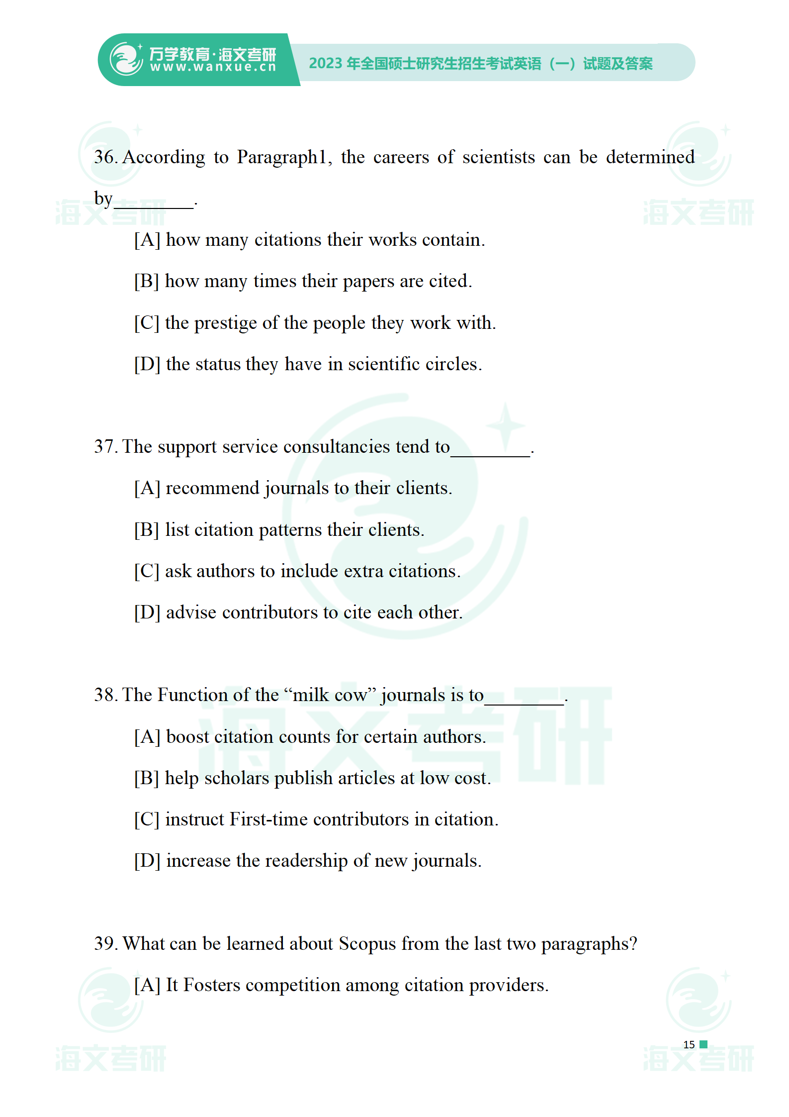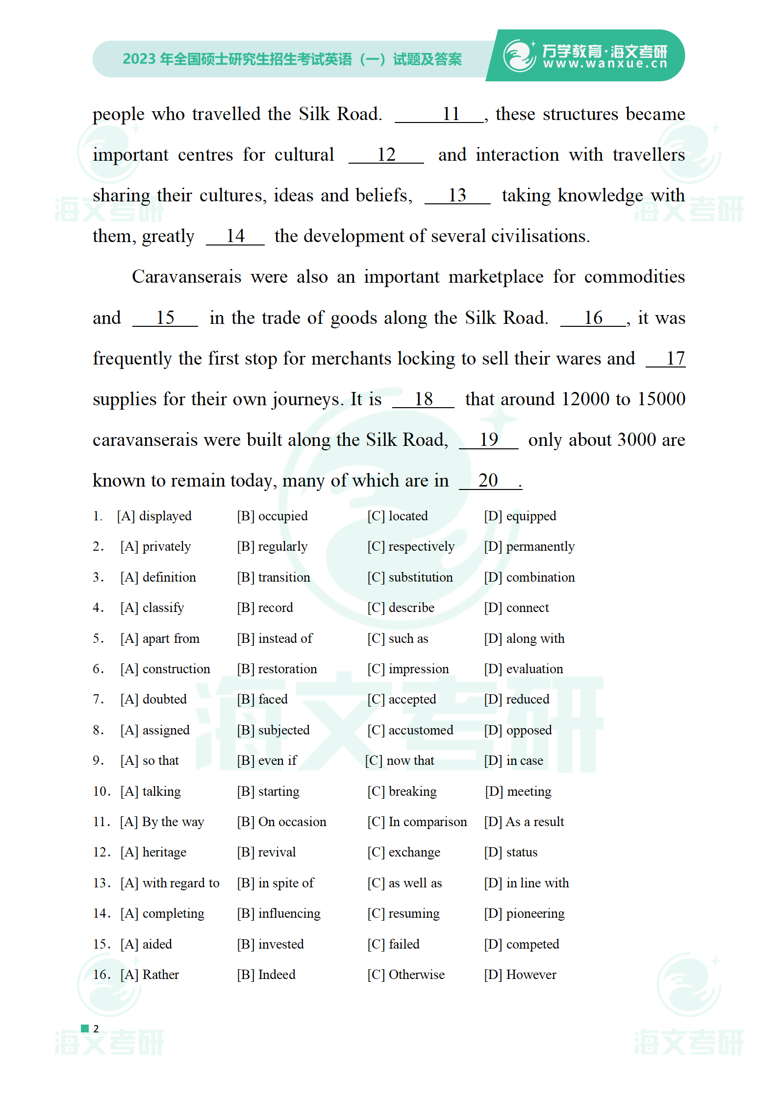 2023年考研英语一 试卷及答案